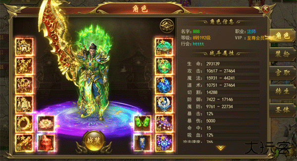 装备部位:武器、衣服、项链、勋章、手镯*2、戒指*2、腰带、鞋子、玉佩、魂珠;