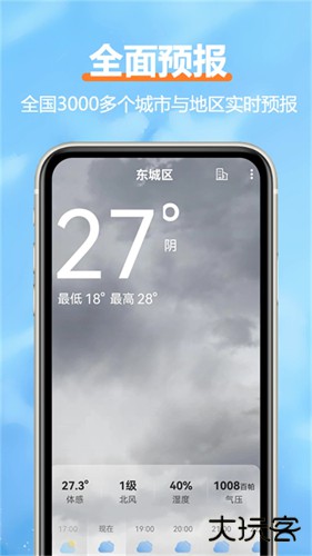 3、简洁界面,直观的天气展示,操作便捷。