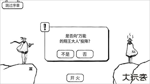 2、轮到角色铁蛋操作时,忽略屏幕上的是否选项,直接点击 “提示” 按钮。接着游戏会用手势指引点击左侧人物,看到下方出现的 “开火” 按钮后点击它就能结束序章。翔王被击败,序章完成,正式游戏启动。