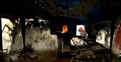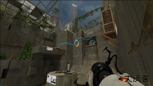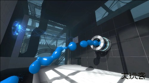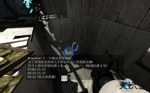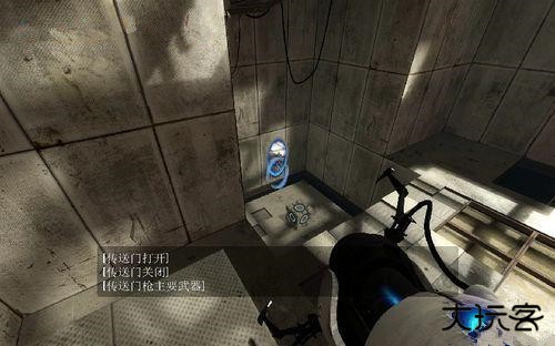 1.武器,玩家必须使用“光圈科学手持传送门装置”(简称“传送门”)解决谜题;该装置能够在白色墙面上建立两种颜色的传送门。
