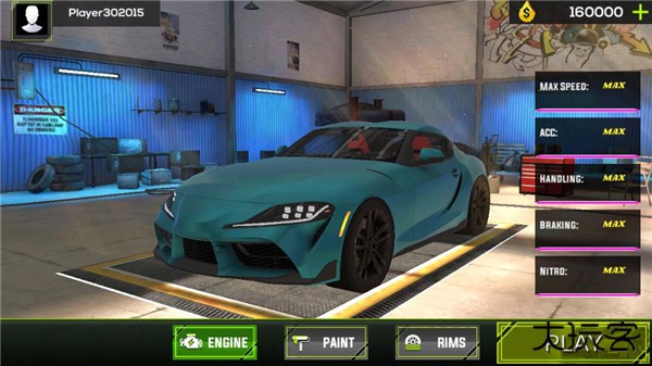 2、进入游戏界面,选择Paint功能可对赛车进行个性化设置,如调整车身颜色等。完成设置后,点击Play按钮即可开始游戏。