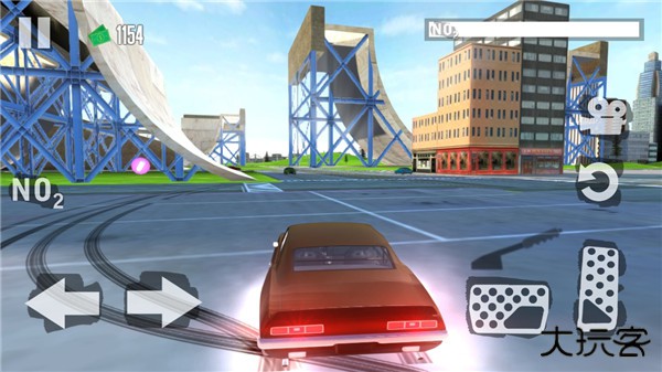 3、游戏开始后,操控方式为:使用屏幕左侧区域控制车辆方向,使用右侧区域分别操控油门(加速)、倒车(倒行 / 减速)及手刹(漂移控制)。