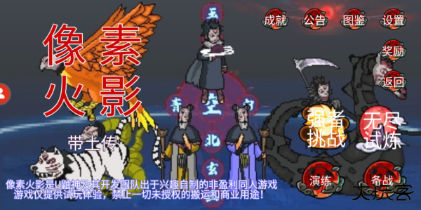 3、游戏以其精美的像素艺术风格以及高度还原的《火影忍者》世界观为核心特色,旨在为玩家创造出身临其境的忍者世界冒险氛围。