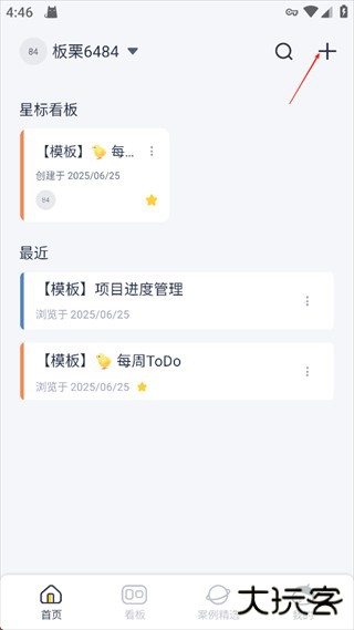 3、点击右上角的【+号】新建看板。