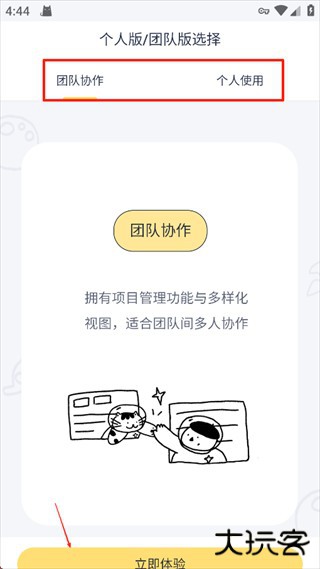 1、打开软件,选择团队协作或个人使用模式。