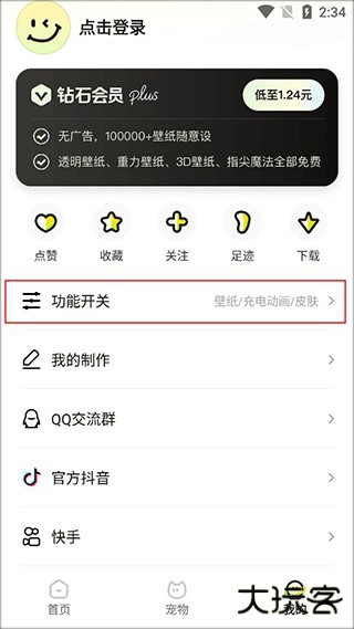 2、进入个人页面后我们找到功能开关,然后我们点击进入。