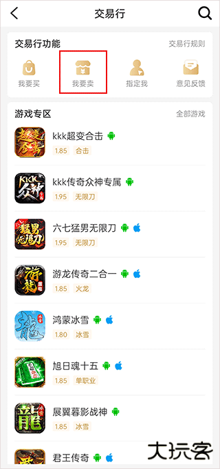 3、选择你需要卖出的游戏名称;