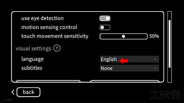 3、接着还是在设置界面,将游戏内的字幕None更改为简体中文,如果想使用触屏操控,那么关闭上方的使用眼球运动探测即可