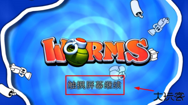 1、首先打开百战天虫手游,触摸屏幕继续;