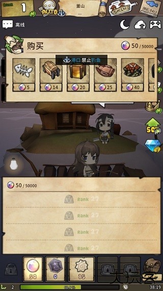 3、随着rank的等级的提升会解锁一些城市,炼金术,农场,轮盘,售卖物品的港口,和升级装备的港口