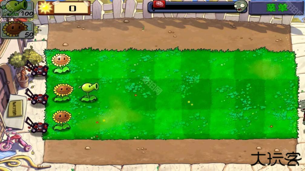 4、选择有僵尸的路径放置豌豆射手以此来击败僵尸,并随着击败僵尸的关卡还可解锁更多的植物以及玩法。
