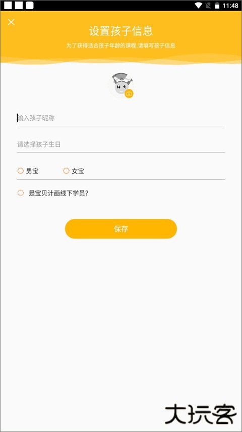 3、输入孩子的昵称、出生日期和性别等基础资料