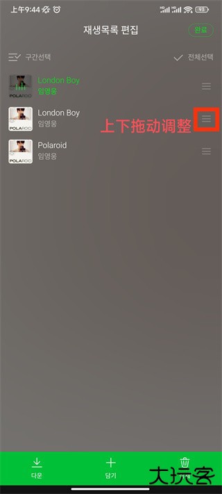 3、然后再依次上下拖动调整你想要歌单的顺序;