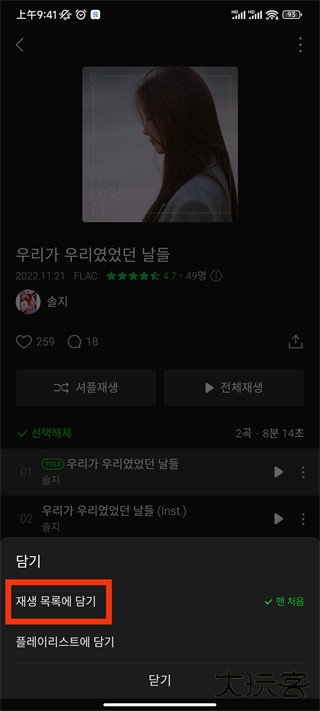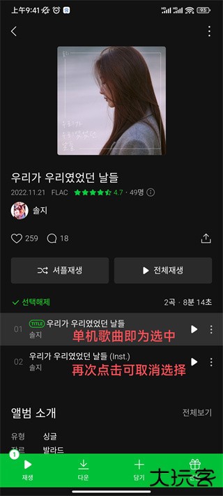 单曲或整专一键添加至歌单,支持点赞与好评互动。