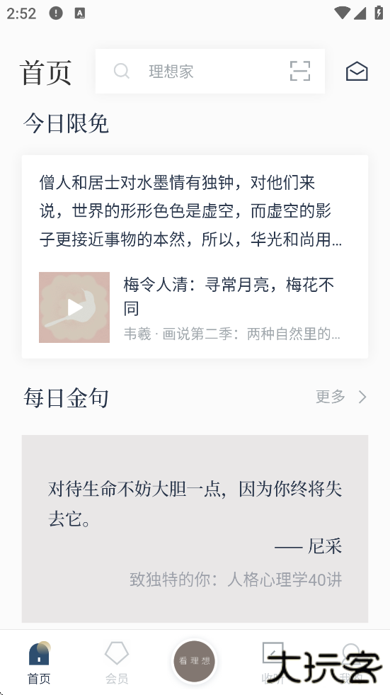 看理想是一款聚焦人文艺术领域的知识付费平台,以“知识的剧场”为核心理念,整合音频、视频、图文等内容形态,为用户提供深度文化内容体验。其涵盖文学、艺术、历史等领域,如梁文道《一千零一夜》、陈丹青《局部》等,兼具学术性与大众传播性,软件通过“理想家”模式连接用户与创作者,支持边听边看等沉浸式学习功能;界面简洁克制,直接呈现内容入口,减少信息干扰,契合小众文化用户对纯粹性的需求。作为理想国旗下品牌,看理想延续“想象另一种可能”的价值观,致力于为高知群体提供缓解焦虑的精神栖息地。