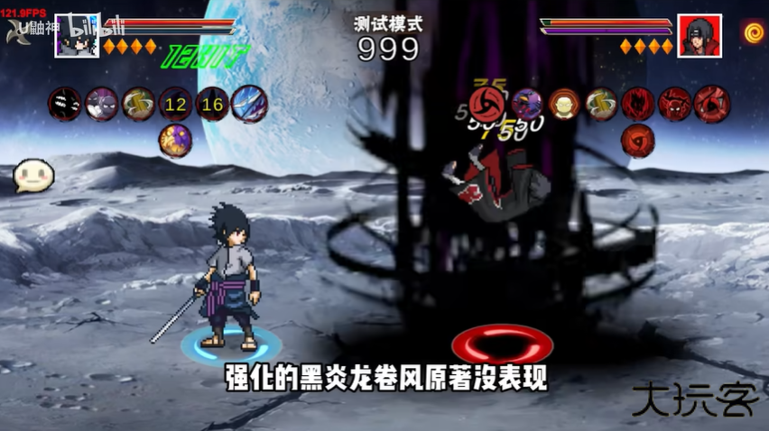 5.地面一技能修改为动漫的双刀飞炎。强化一技能强化黑炎燃烧。二技能强化黑炎龙卷风。小奥义直接召唤须佐能乎。