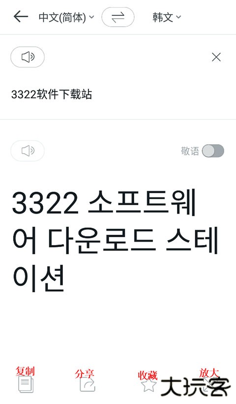 3、然后编辑你想翻译的中文,下方就会出现对应的韩文,还支持语音哦!