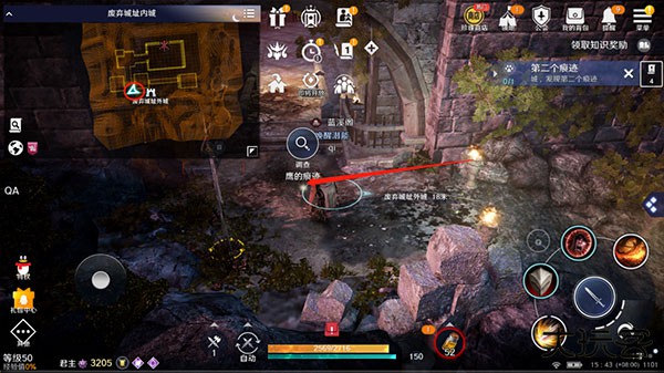 我们需要前往【废弃城址内城】寻找小鹰的踪迹。第一个痕迹很难注意到,因为它藏在boss入口的左后方,再加上边上的野怪会自动攻击咱们,所以很容易就忽略掉。