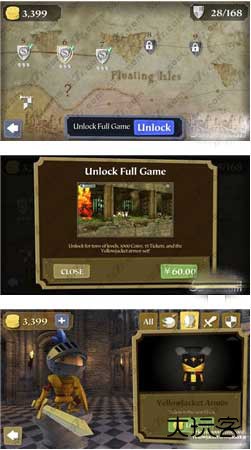 2、多样关卡设计: 关卡数量真的够多,有 168 个关卡等着探索。每个关卡都设定了三个支线任务,比如收集钻石、砍杀怪物、远离毒金币、或者抵挡炮弹啥的。完成后能获得各种奖励来提升进度。任务变化多,玩起来一点不单调。