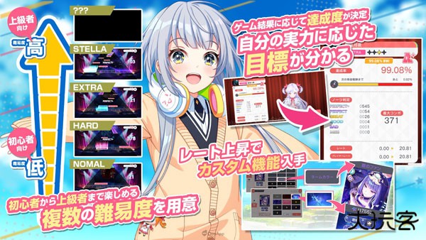 3、丰富多元的音乐曲库。游戏不仅收录电视动画片头曲 (OP) 及片尾曲 (ED),更包含各剧团专属原创曲目,例如代表曲《Wanavista!》。同时提供多首改编流行曲目,持续扩充可游玩内容。