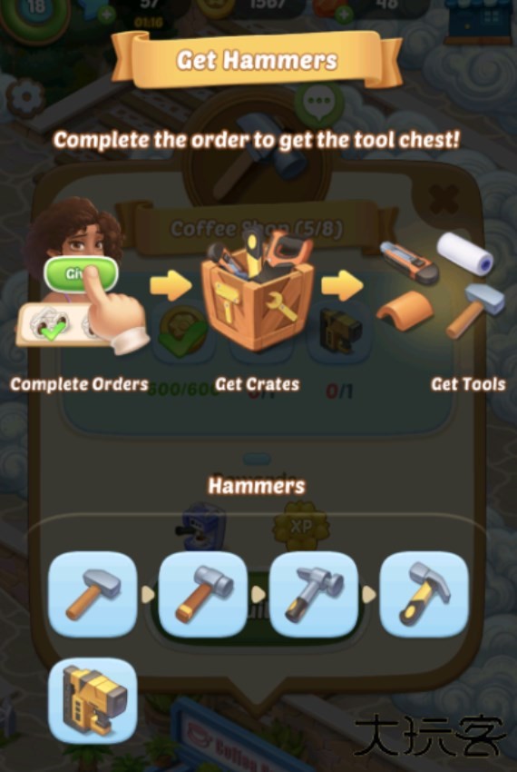 当你收集到一定数量的金币或者工具时,你可以点击相应的页面完成房屋建造