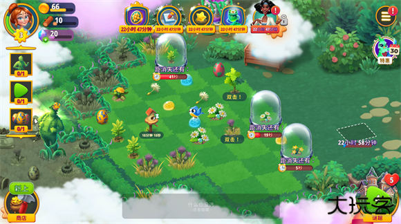 3、我们只要解锁一定的草地就可以进行升级,升级会给予奖励。