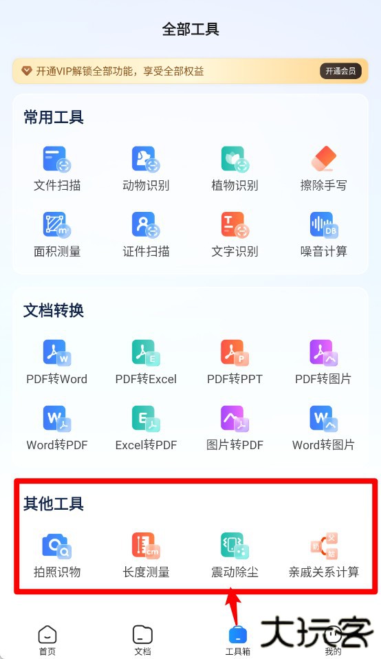 3、工具箱提供文字识别、文件扫描、噪音计算等常用智能工具。