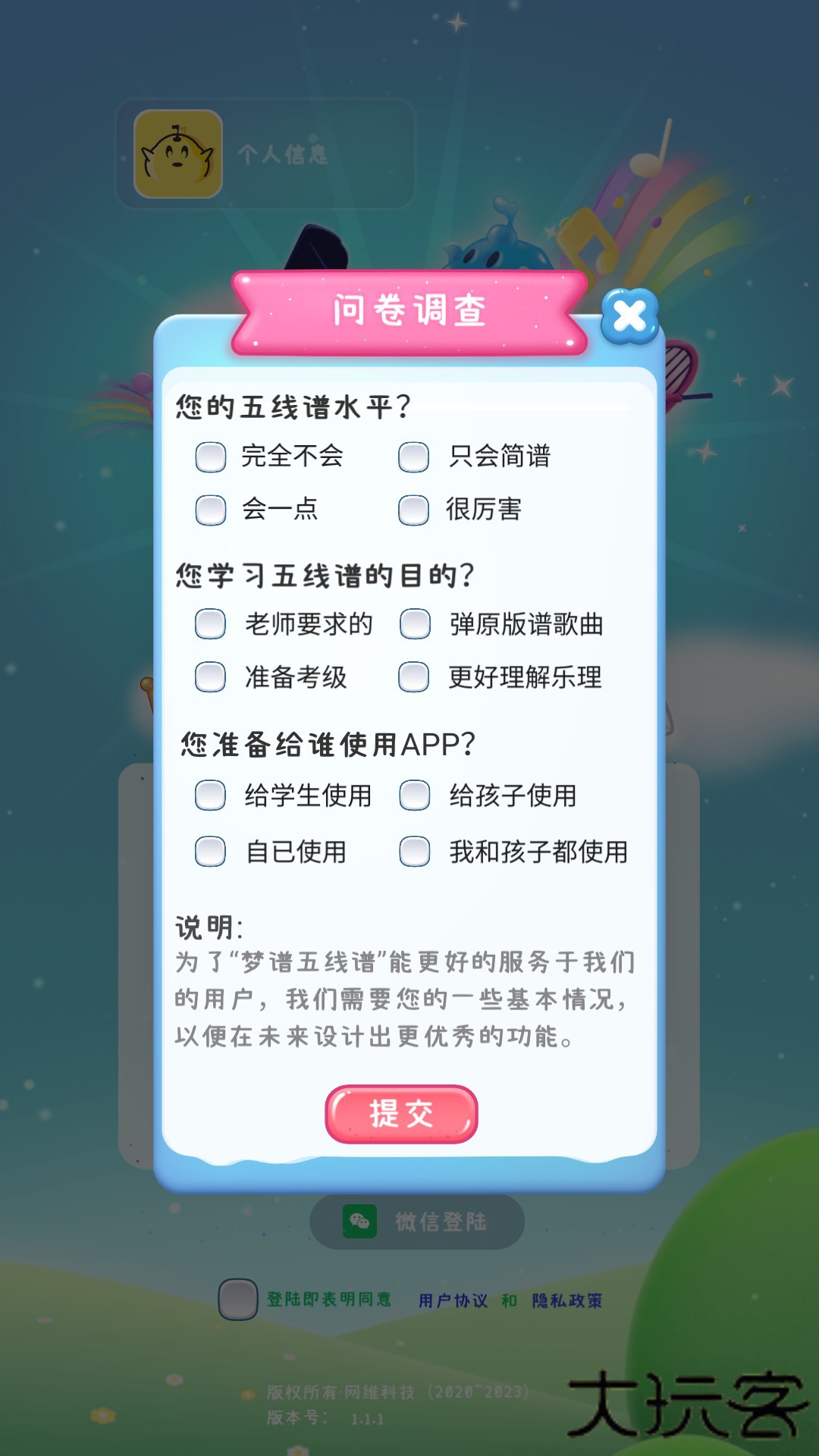 1、打开软件后提交一个问卷调查,让软件能更好的帮助你学习。