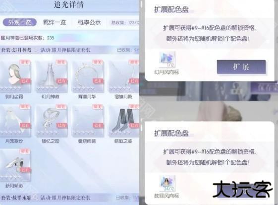 双五阁需要两套齐,才能继续抽拓色。而且拓色无保底,随机出重复部件,欧非差距极大。两套全拓300抽~350抽。