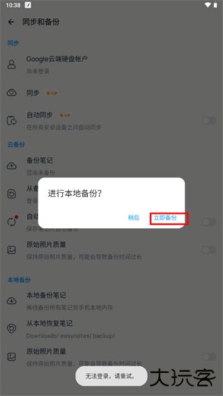 3、点击“立即备份”(如果备份失败,请先检查您的网络,重新尝试备份)