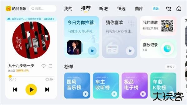 3、酷我音乐车机版与手机App账号互通,个人歌单、收藏等资产同步共享。