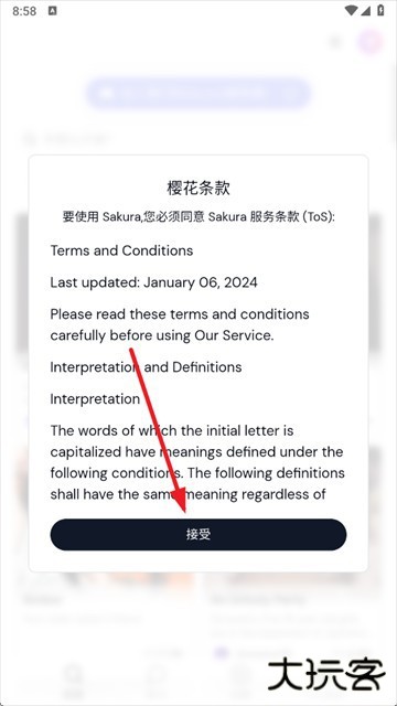2、点击同意条款。