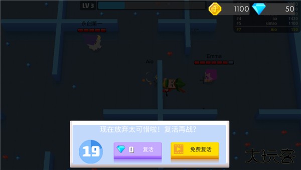 5、当然角色死亡后是可以通过看广告进行复活的,因为版本的特性玩家可以直接复活不需要看广告