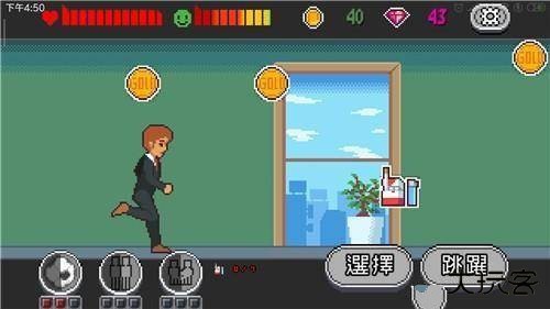 3、步入工作阶段,收集金币将增加个人财富值,此数值为寻觅伴侣、购置车辆房产等行为的经济基础。然而,若过度专注于收集金币(代表持续高强度工作),将导致心情指数持续下滑。此时需及时收集食物以缓解负面情绪。需特别留意香烟道具,虽短暂缓解压力,但会损害健康并消耗体力值。游戏中,当体力值或心情值任意一项率先归零,游戏将强制结束。因此,合理安排工作与休闲的平衡至关重要。