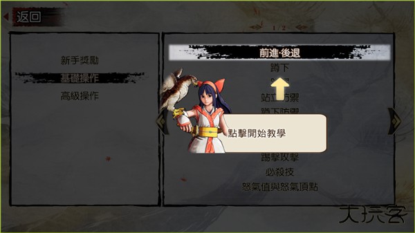5、查看前进、后退、必杀技、踢拳攻击等核心操作说明,开始教程练习;