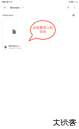 3、找到下载的字体文件,点击要导入的字体。