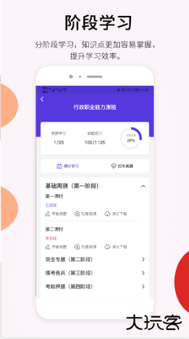 学习页:按“基础→专题→冲刺”阶段管理已购课程。