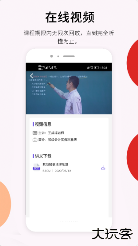 录播课:进入“学习页”→选择科目(如初级会计)→点击章节视频→结合电子讲义标记重点(支持下载离线使用)。