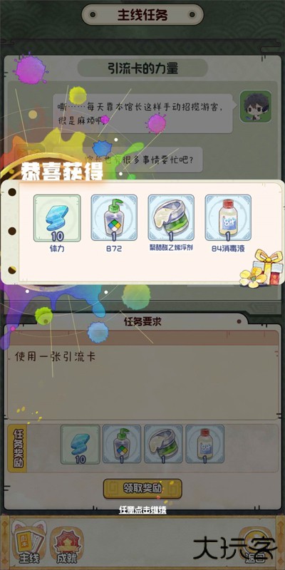 展馆维护:开馆清洁可得碎片材料,开馆需人气值(文物稀有度与星级影响人气)。