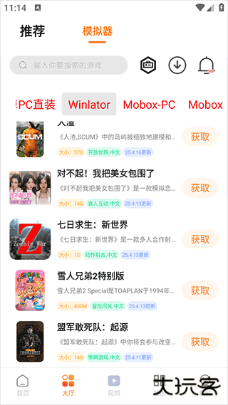 2、点击任意模块,找到满意的游戏后点击获取,即可直接开始下载