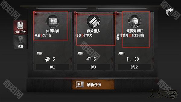 1、首先在本站下载游戏,进入游戏之后可以直接开始新的游戏,想要获得部分物资可以点击主界面右边的每日任务选项