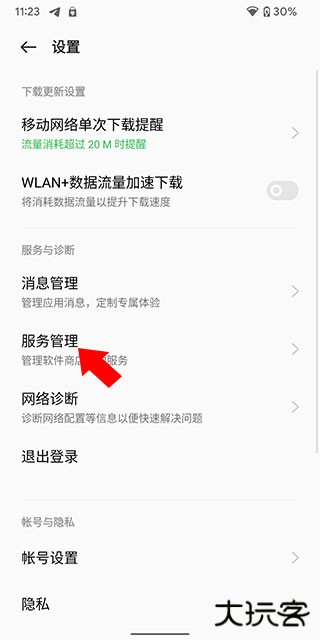 2、进入设置界面后,我们点击“服务管理”;