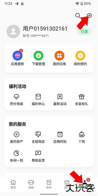 1、进入oppo应用商店点击我的板块,选择右上角的选项或是点击头像;