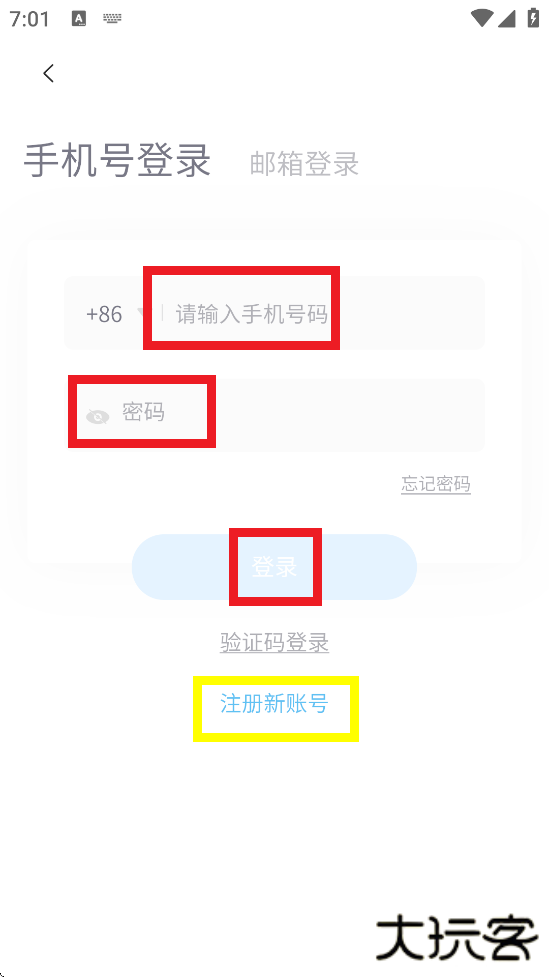 2、输入手机号和密码进行登录,新用户应该先注册账号。