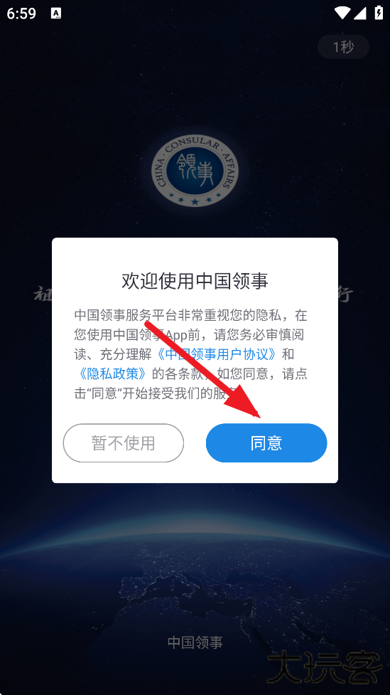 1、打开软件,点击“同意”。