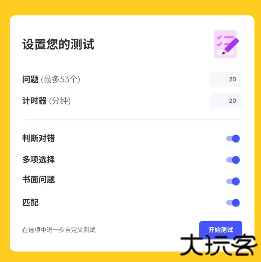 在测试模式下试用一轮免费回合,然后使用Quizlet Plus尽情频繁地测试自己。在无限回合测试模式下,没有什么能阻碍您进步。