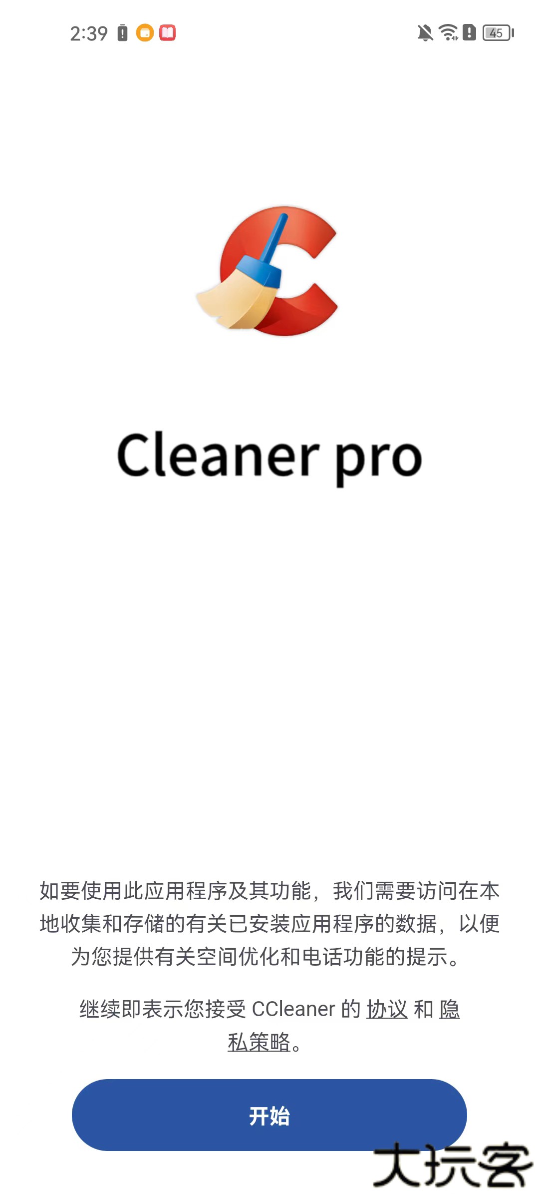 1、打开ccleaner pro安卓版软件,点击【开始】
