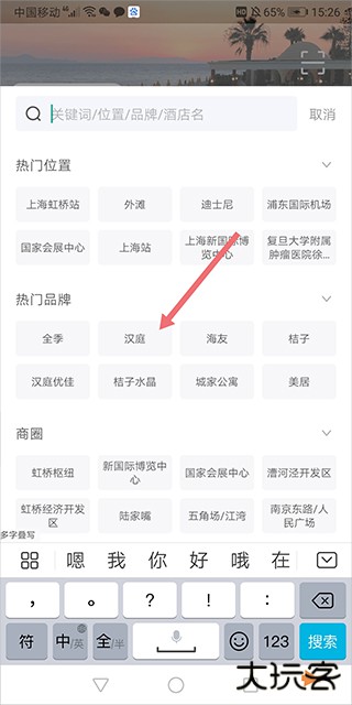 1、在软件推荐页面,定好要预订的房间的城市、入住时间,然后点击输入关键词搜索酒店