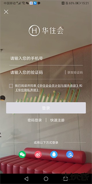 1、打开汉庭酒店订房app(华住会app),使用手机号免费注册登录软件