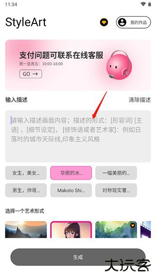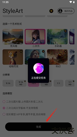 【创造个性化艺术】 通过输入简单描述和选择风格,快速生成独特的艺术作品。